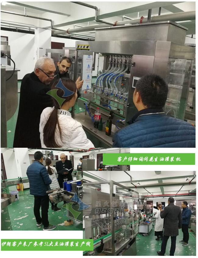 灌装生产线已经成为各大中型企业的必备设备,我们星火机械的设备因质量和优越的性能也出口到多个国家,近日伊朗客户就专门来厂考察了这条5L调和油灌装生产线并达成合作意向